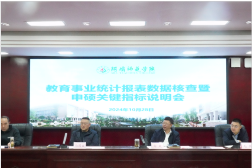 【本网讯】为严格审核教育事业统计报表数据,持续推进学校申硕工作,2024年10月28日上午9:00在行政楼二楼会议室召开教育事业统计报表数据核查暨申硕关键指标说明会。学校党委副书记、校长向武,党委副书记毛英,党委常委、副校长马昌威,党委常委、副校长、工会主席宋弘,党委常委、副校长齐泽民及相关职能部门参加本次会议。本次会议由毛英主持。